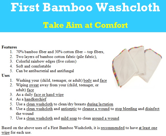 Based on the above uses of a First Bamboo Washcloth, it is recommended to have at least one washcloth for each use.